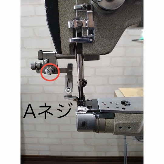 Aネジを緩めてダイヤルを回す事によりステッチ幅が微調整できます。