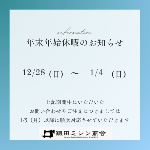 【年末年始休業のお知らせ】2025/12/28~2026/1/4